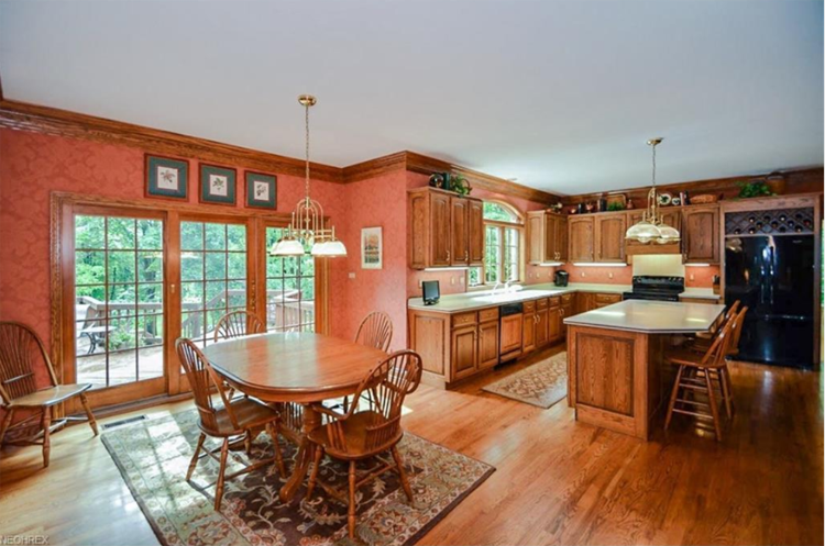 The woodwork in this kitchen is absolutely one of a kind, drawing you in with its detailing and rustic country vibe. You will find that same custom detailing throughout the home — a four-bedroom beauty nestled in Northeast Canton.|